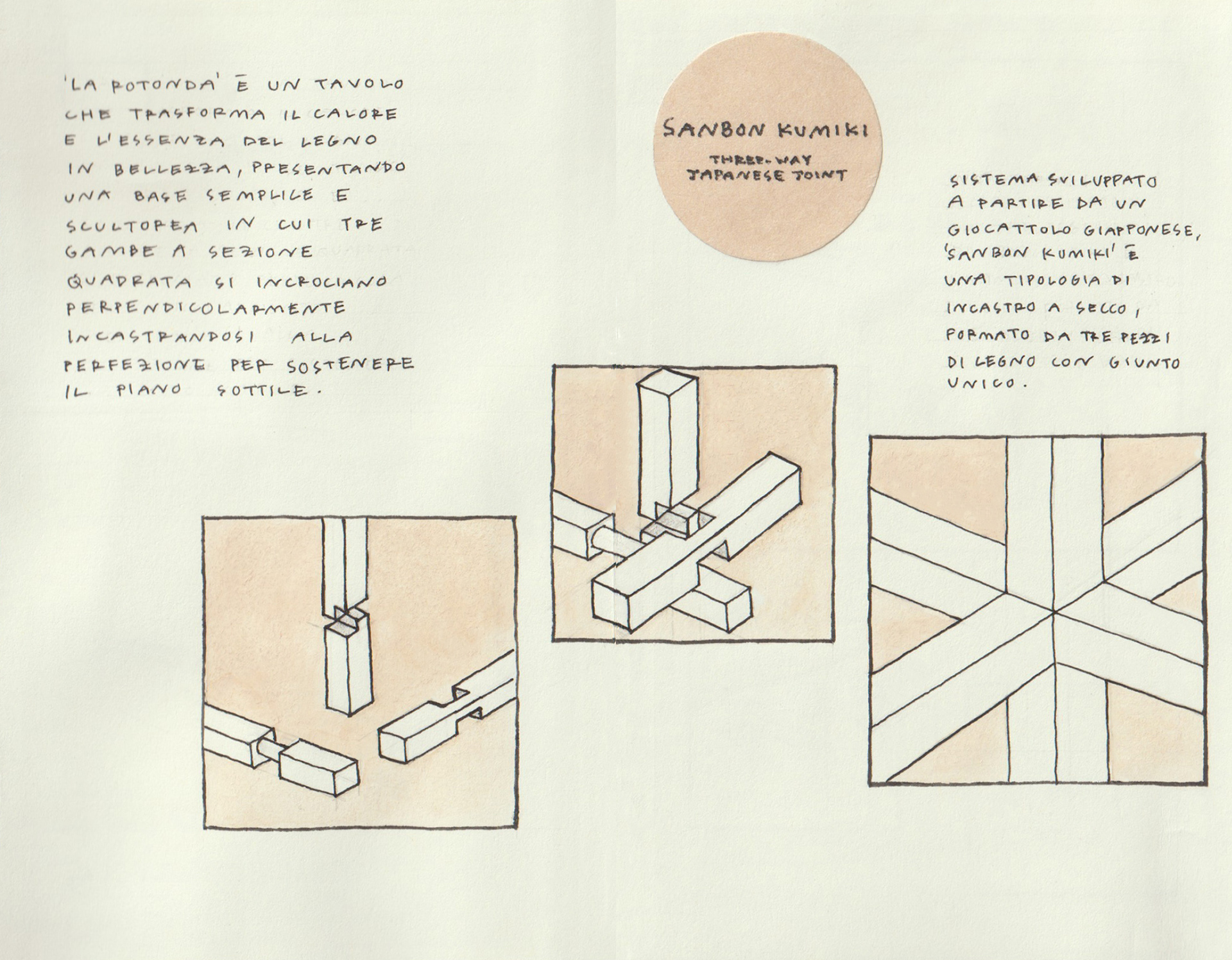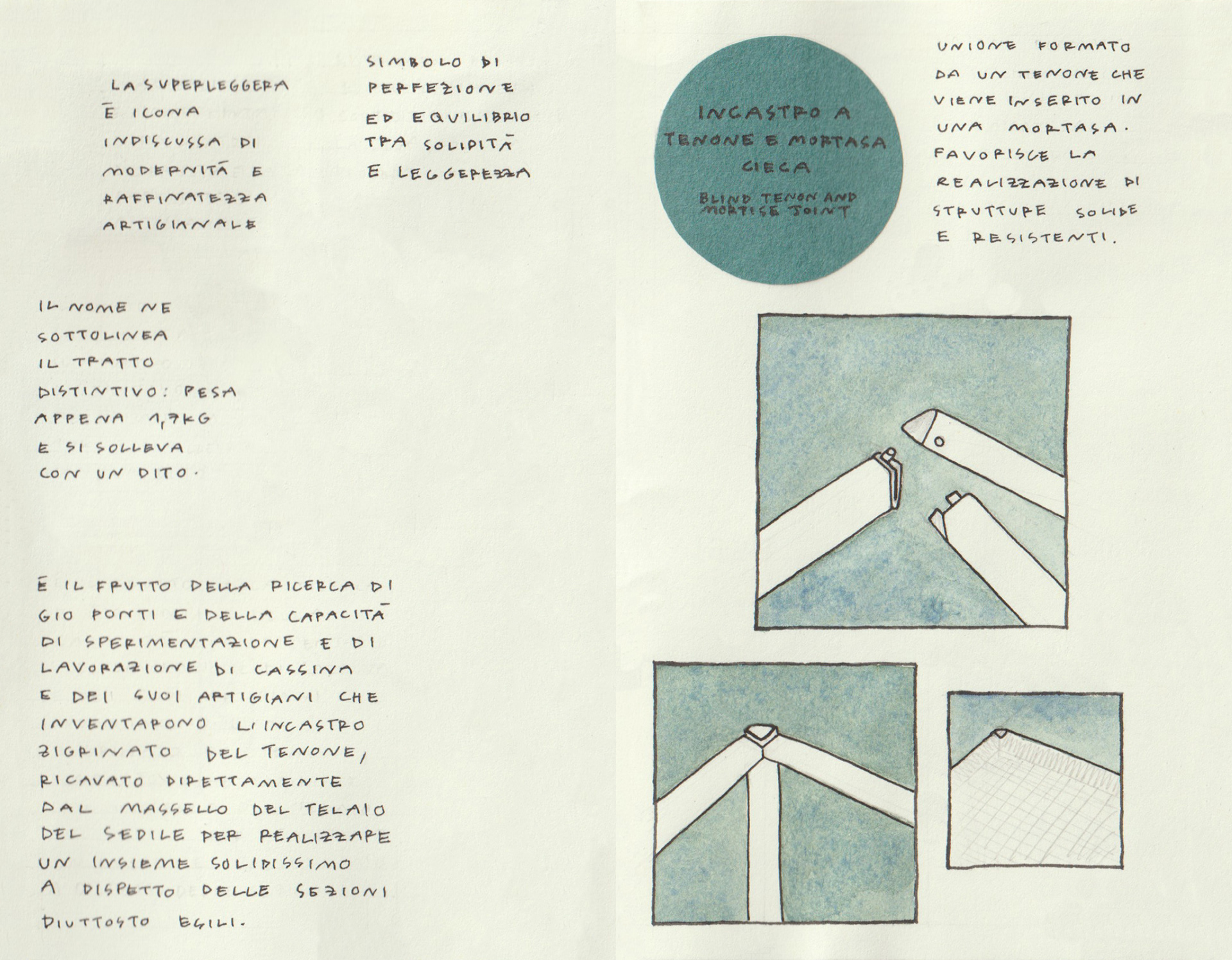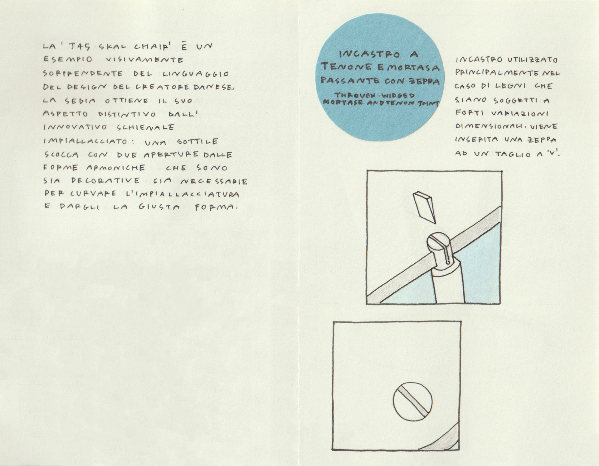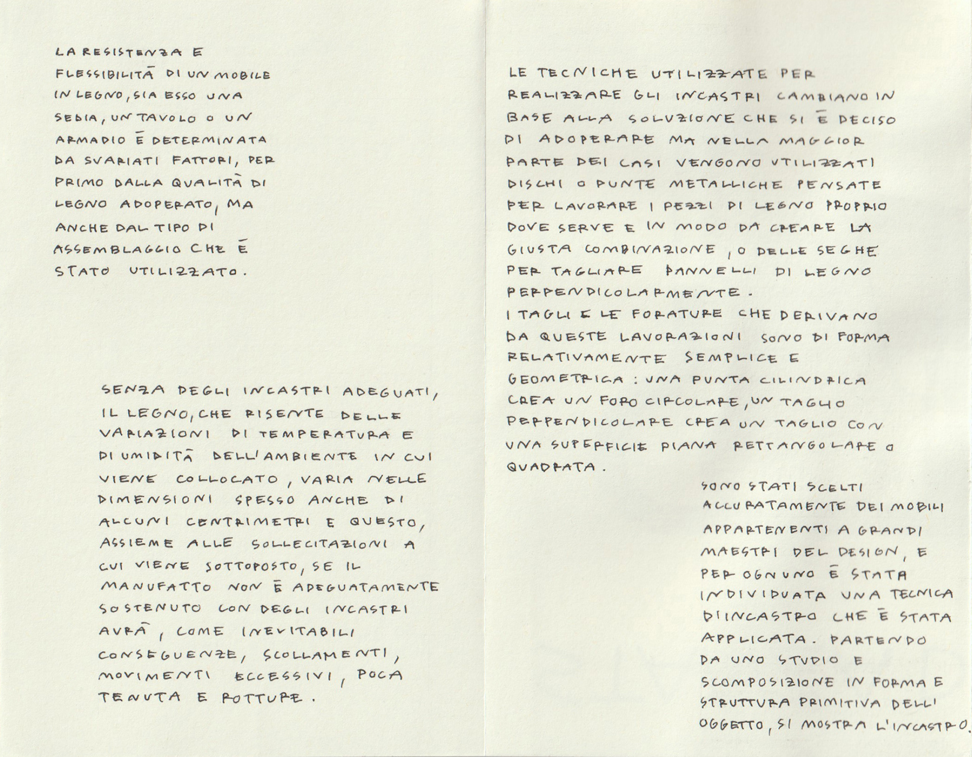 for the project, folded in a moleskine's japanese album (9x14cm), six wooden furnitures belonging to great masters of design has been chosen, and for each one it was identified a joint technique that has been applied.